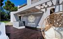 Die Villa verfügt über einen überdachten Außenbereich mit Außenküche, Ankleidezimmer, Gartenhaus und Außenbad.