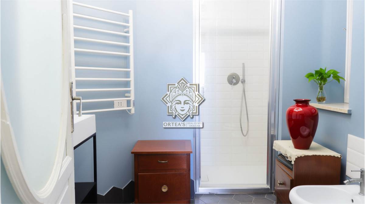 This first-floor apartment has a comfortable living room, a bedroom, a kitchen, a renovated bathroom with shower and another room used as a study; on the upper floor another bedroom with access to one of the two sea view terraces; going up a further level there are two more bedrooms, another bathroom and the terrace from which you can fully enjoy the direct view of the sea, also being able to observe the entire area called Syracuse Riviera which, together with the island of Ortigia, ideally embraces one of the two clearly visible ports.